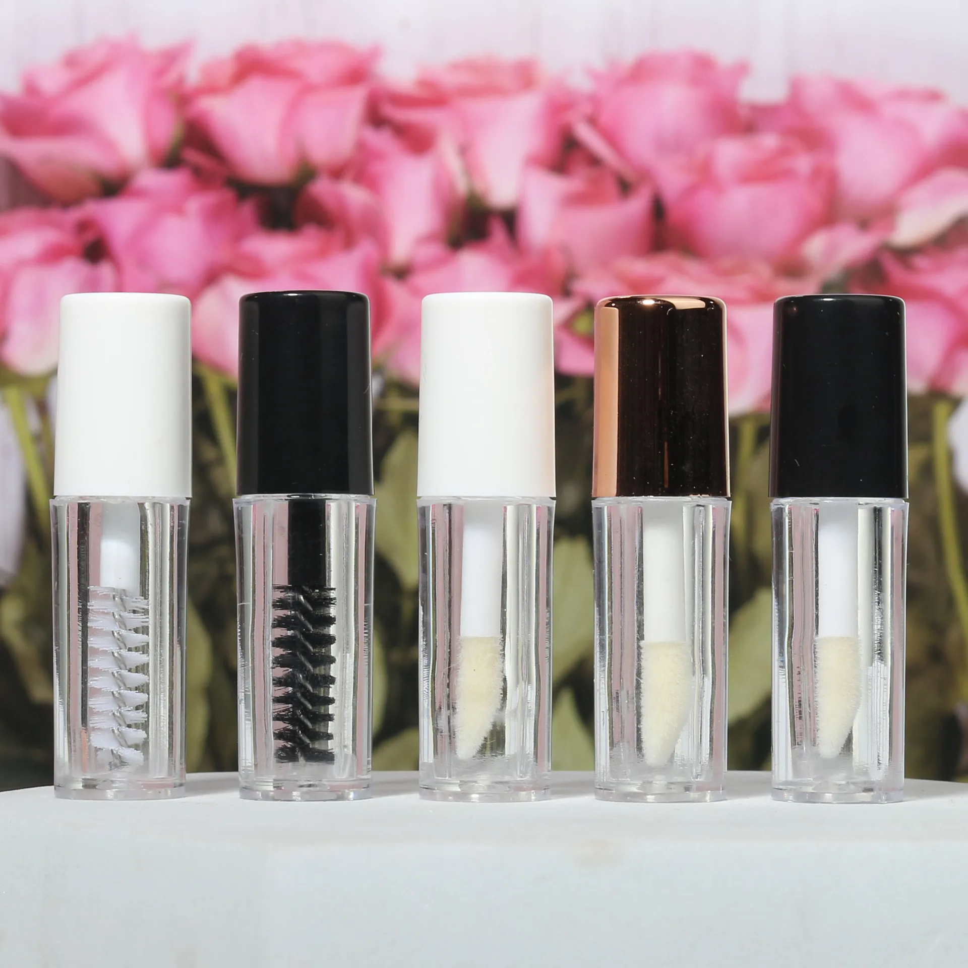 Mascara (Black Container), Mascara (White Container), Lip Gloss (White Container), Lip Gloss (Black Container)